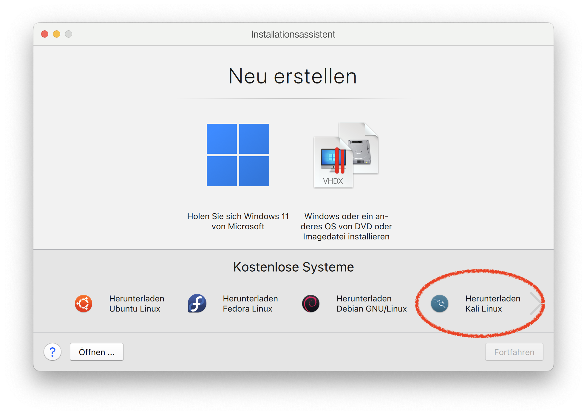 Um Kali Linux auf deinem MacBook Pro über Parallels einzurichten, folge diesen einfachen Schritten: